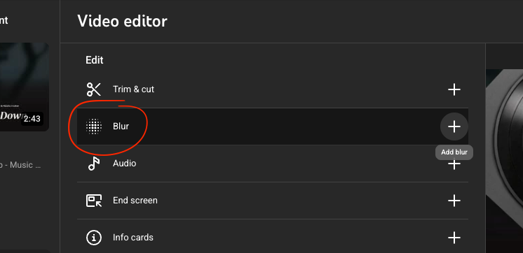 You'll find it in YouTube Studio under the Editor section, with two options: automatic Face Blur that attempts to detect faces, and Custom Blur for manual placement.