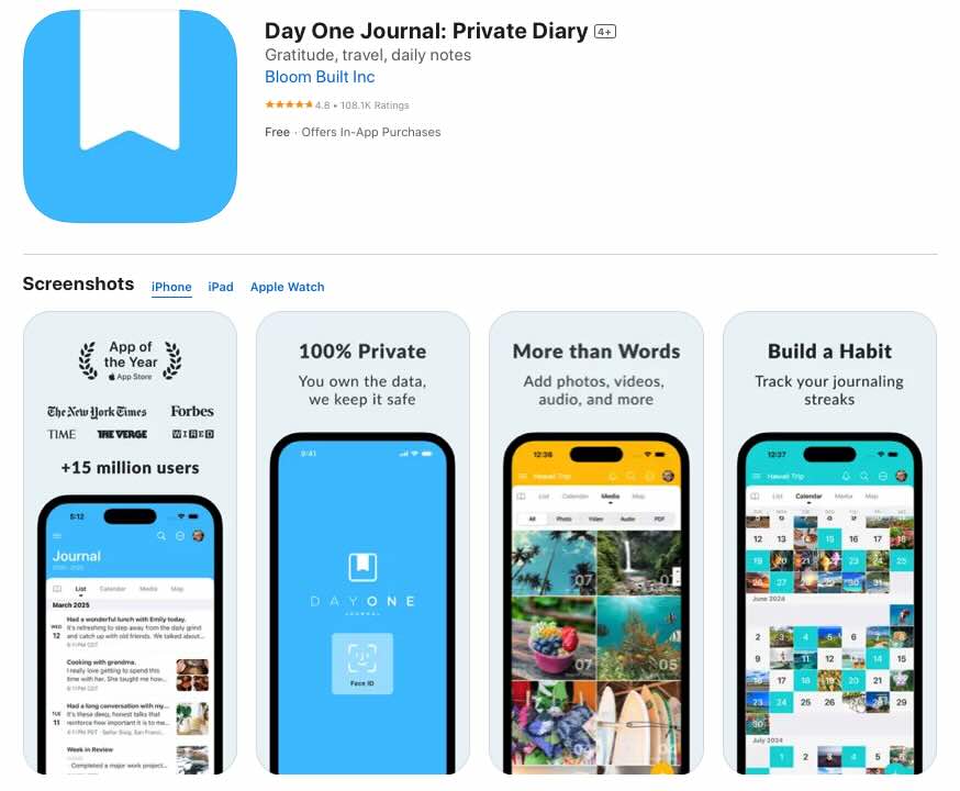With support for audio recordings, photos, and voice-to-text, Apple Journal makes capturing multi-dimensional memories effortless. Its "Reflections" feature provides thoughtful prompts based on your activities, while the scheduling function helps establish consistency. For those already invested in the Apple ecosystem, this free app provides a natural extension of your digital life.